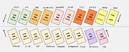左:yasuyuki号 右:のぶちゃん号 左:focus号 右:bridgebook号