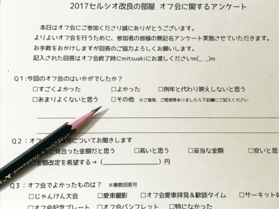 今年のオフ会ではみなさんにアンケートを取らせていただき、概ね満足して頂いているご回答をいた