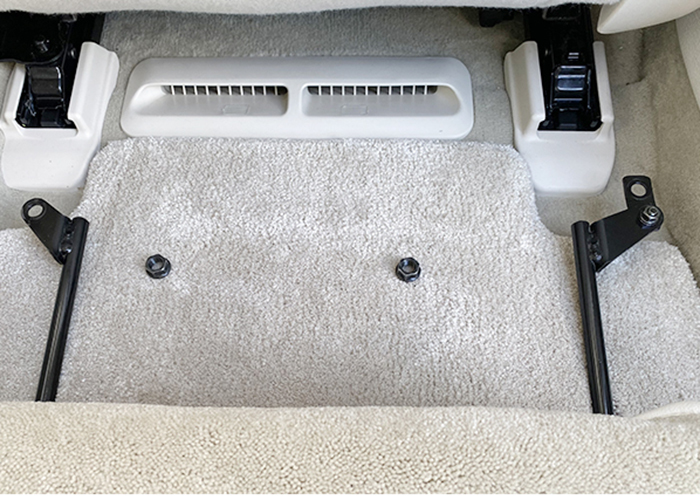 装着にあたり、左右シートのシート台座の化粧樹脂を取り外してから、オットマンを装着