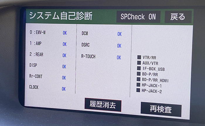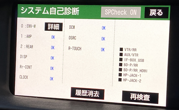例えば車両システムチェック画面に以降し、システム自己診断をかけ