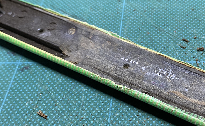 ③ウッドを極薄に削って、両面テープ貼り付け。