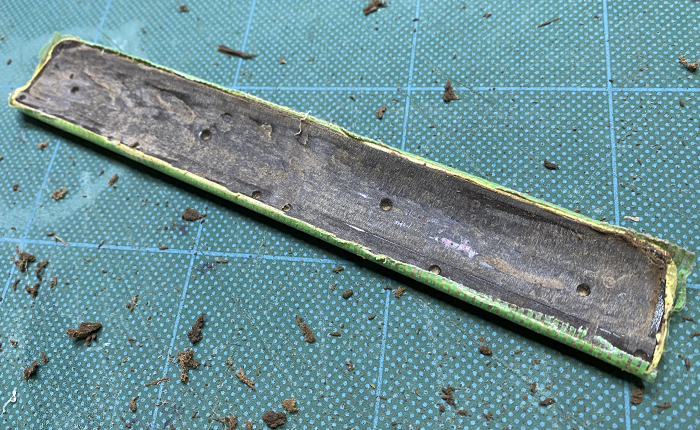 裏面の樹脂部分をウッドが接着されているアルミ部分が見えるまで削っていきます。