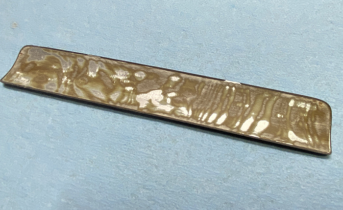 判断材料として失敗した場合に被害がウッドだけで済むことと、手元に前期のウオールナットの同部分の部品を持っていたので事前に加工シュミレーションをして、失敗しそうな加工方法の洗い出しを行っておきました♪ただ、事前シュミレーションでそのウッドはボロボロになり、自信を持って加工に臨める精神状態ではありませんでした(>_<)