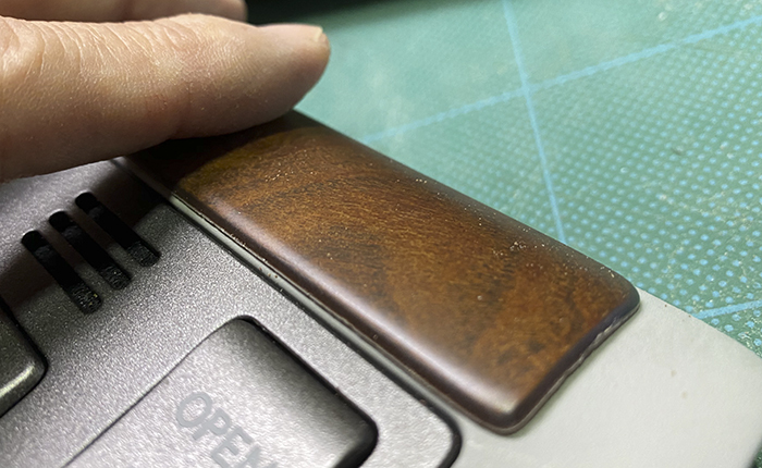 ウッドの表面は無事傷つけることなく樹脂部分の削り作業完了。