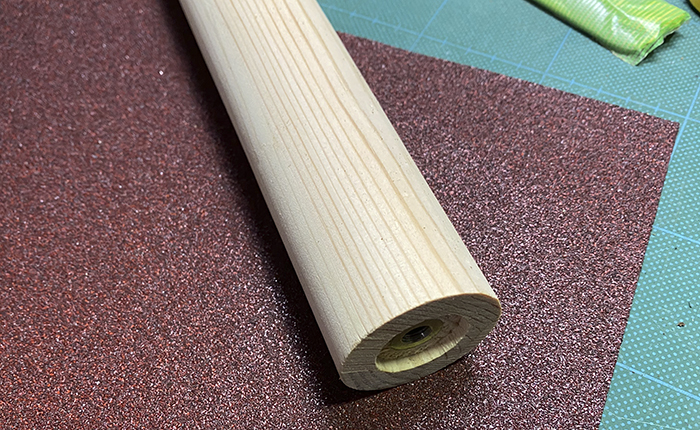 ホームセンターで売っていた丸棒(ウッドのカーブに近いもの)とサンドペーパー。