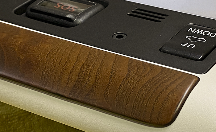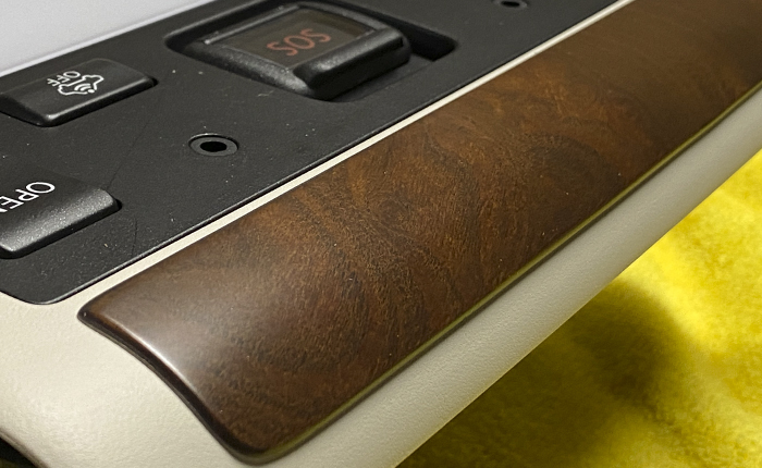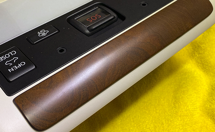 スイッチベースのウッドはLS600hシリーズ前期型/中期型(一部グレードを除く)のみに装着されていて、前記したように中期型はつや消し仕上げ、前期型用はネットオークションでも見かけるのですが中期はなかなかなくて、この部品を中古品で探すのに半年以上時間を要しましたが、無事ネットオークションで出品されているのを発見、若干お値段高めでしたがこのウッド欲しさにゲット。