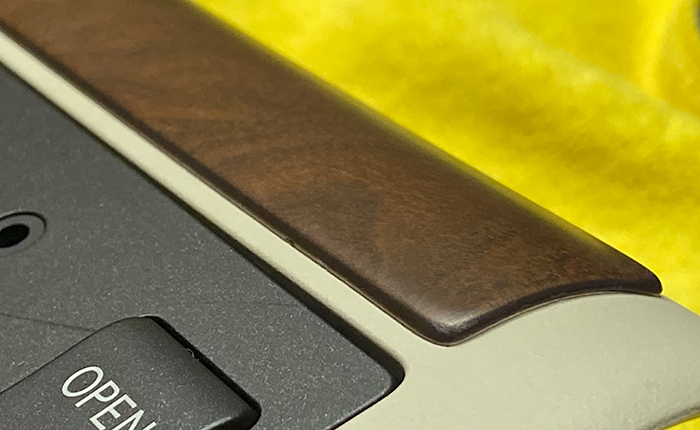 手前味噌になりますが、凹ませなしでウッドを貼り付け方が高級感あるように見えます。