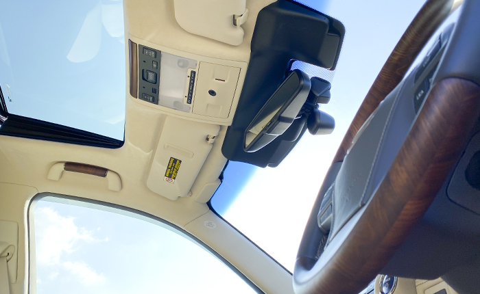 ウッドを貼り付けたことにより、運転席頭上の雰囲気が一気に変わりました。
