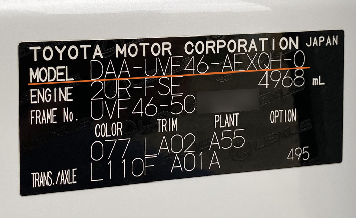 そこでLS600hL EXECUTIVE package 車両型式記号についてご紹介します。