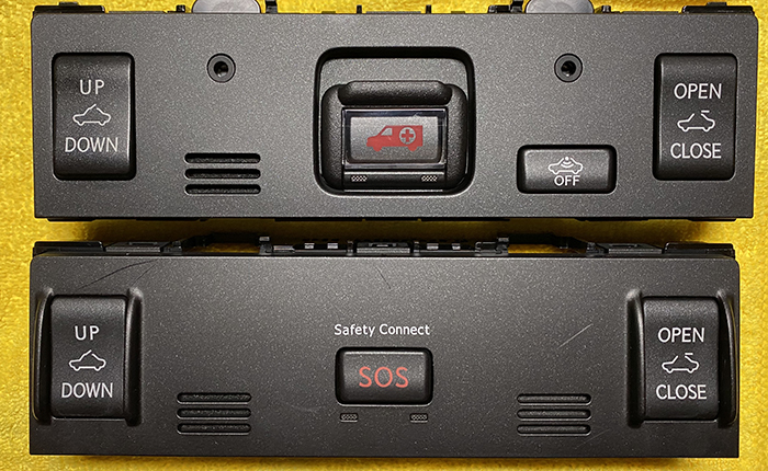 US仕様のSOSスイッチ、前期型/中期型と国内仕様と同じ救急車のイラスト。